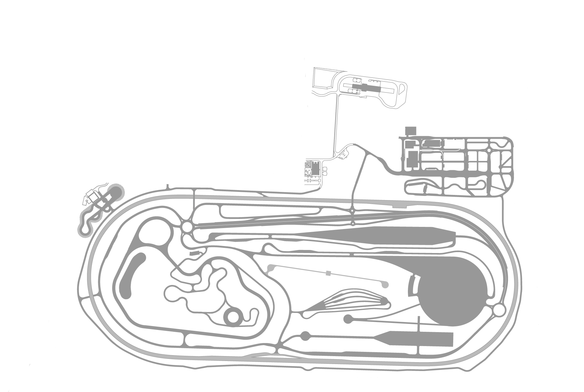 The braking surfaces are separated into 8 different lanes: a chess surface, high friction, Japanese tiles, blue basalt, asphalt, polished concrete, asphalt, and an aquaplaning basin.